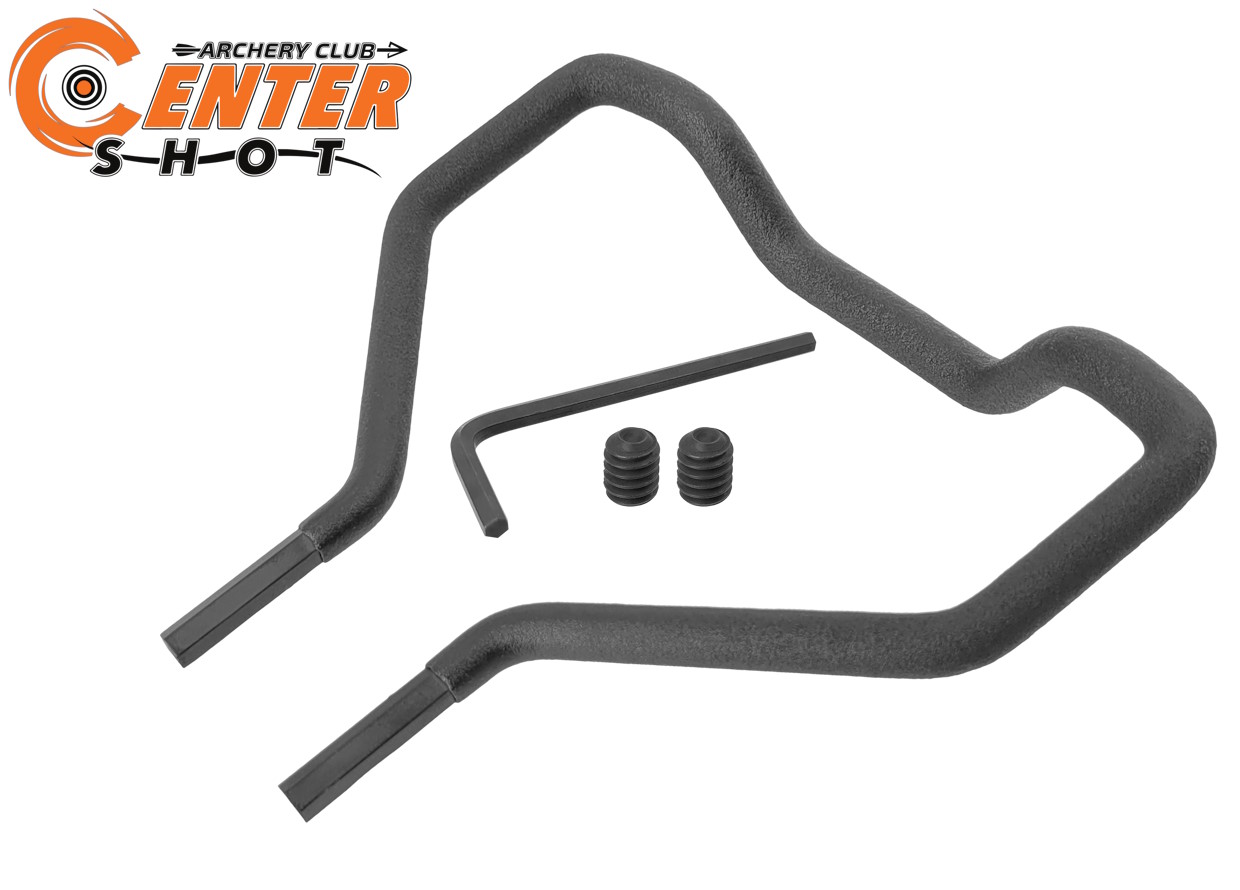 В комплект входит стремя, два крепежных винта, шестигранник 1/8 дюйма. Материал изготовления: сталь в резиновой оплетке.