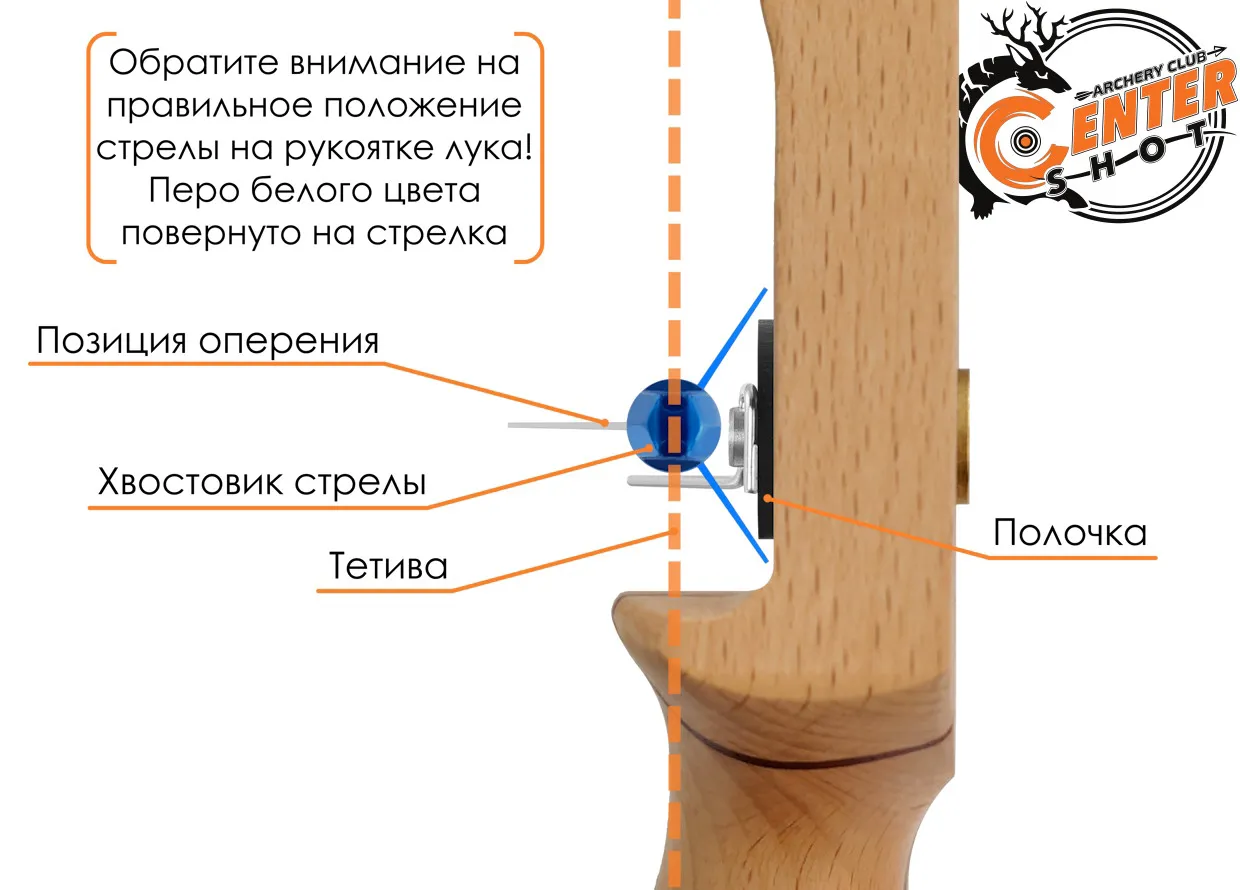 Полочка прослужит вам долго только при условии корректного укладывания стрел перед стрельбой. Перо стрелы, отличного цвета от остальных двух перьев, должно быть направлено на стрелка. Также убедитесь в правильном положении хвостовика стрелы.