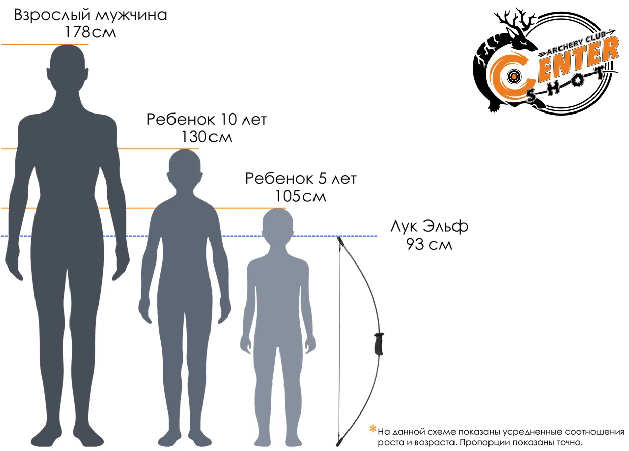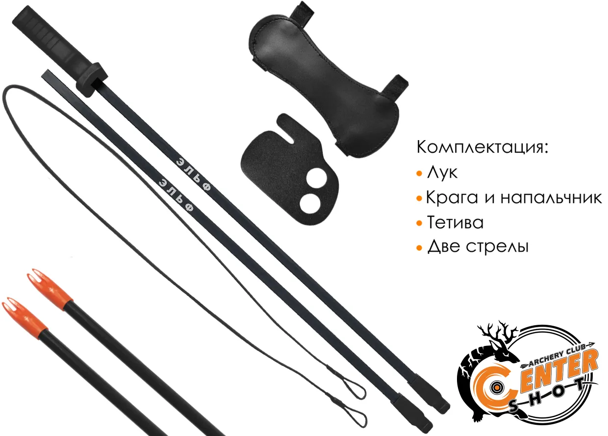 Комплектация: Лук (рукоятка с плечами); тетива; две стрелы; крага; напальчник