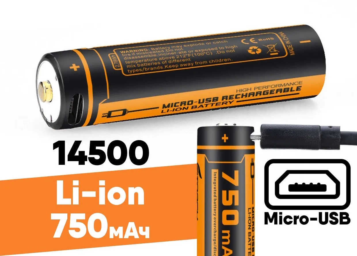 Аккумулятор 14500 FiTorch (750 mAh) с зарядкой USB