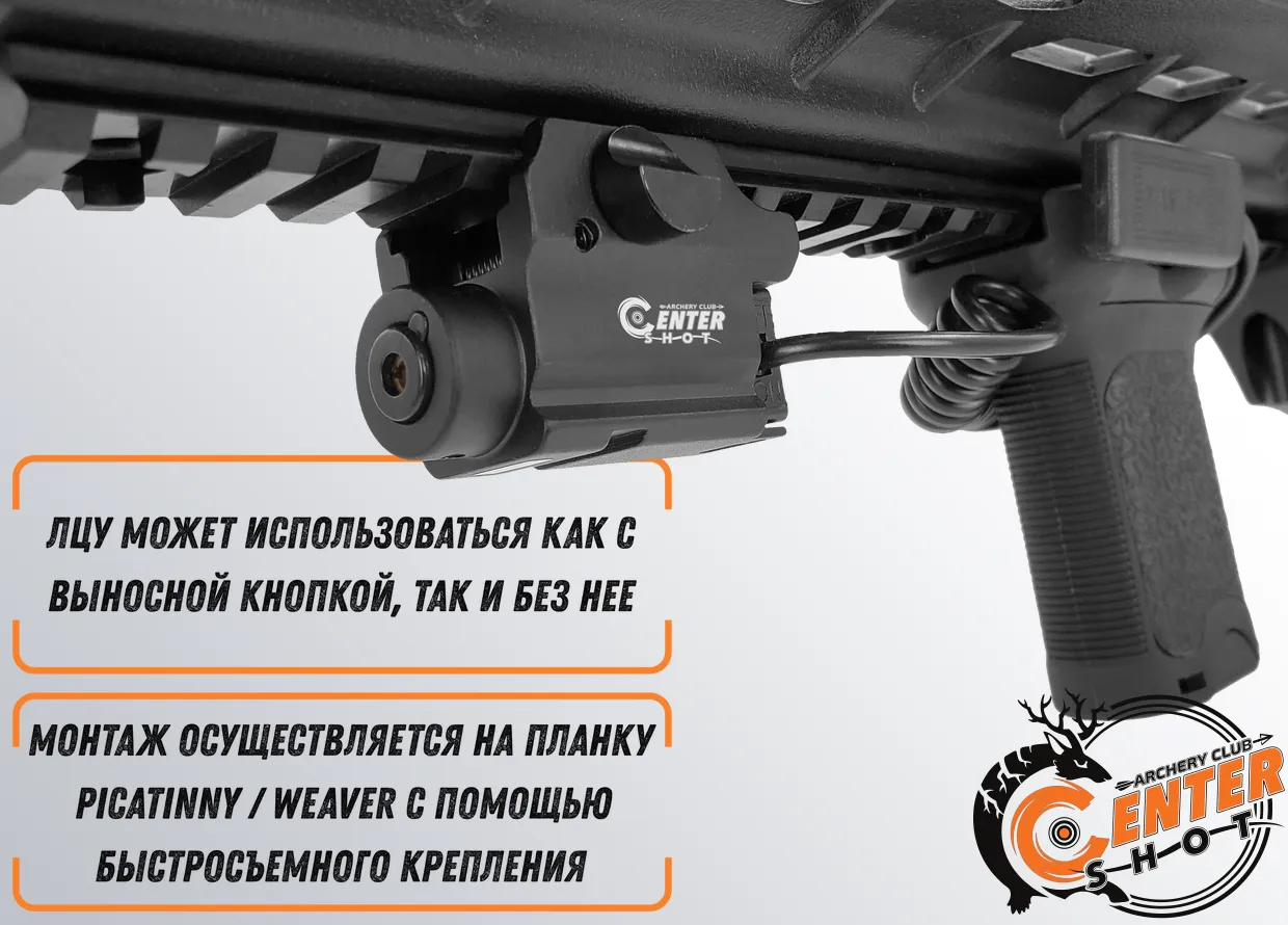 Регулировка по горизонтали и вертикали производится с помощью ключа-шестигранника. Выносная кнопка позволит активировать ЛЦУ с удобного для вашей руки положения.