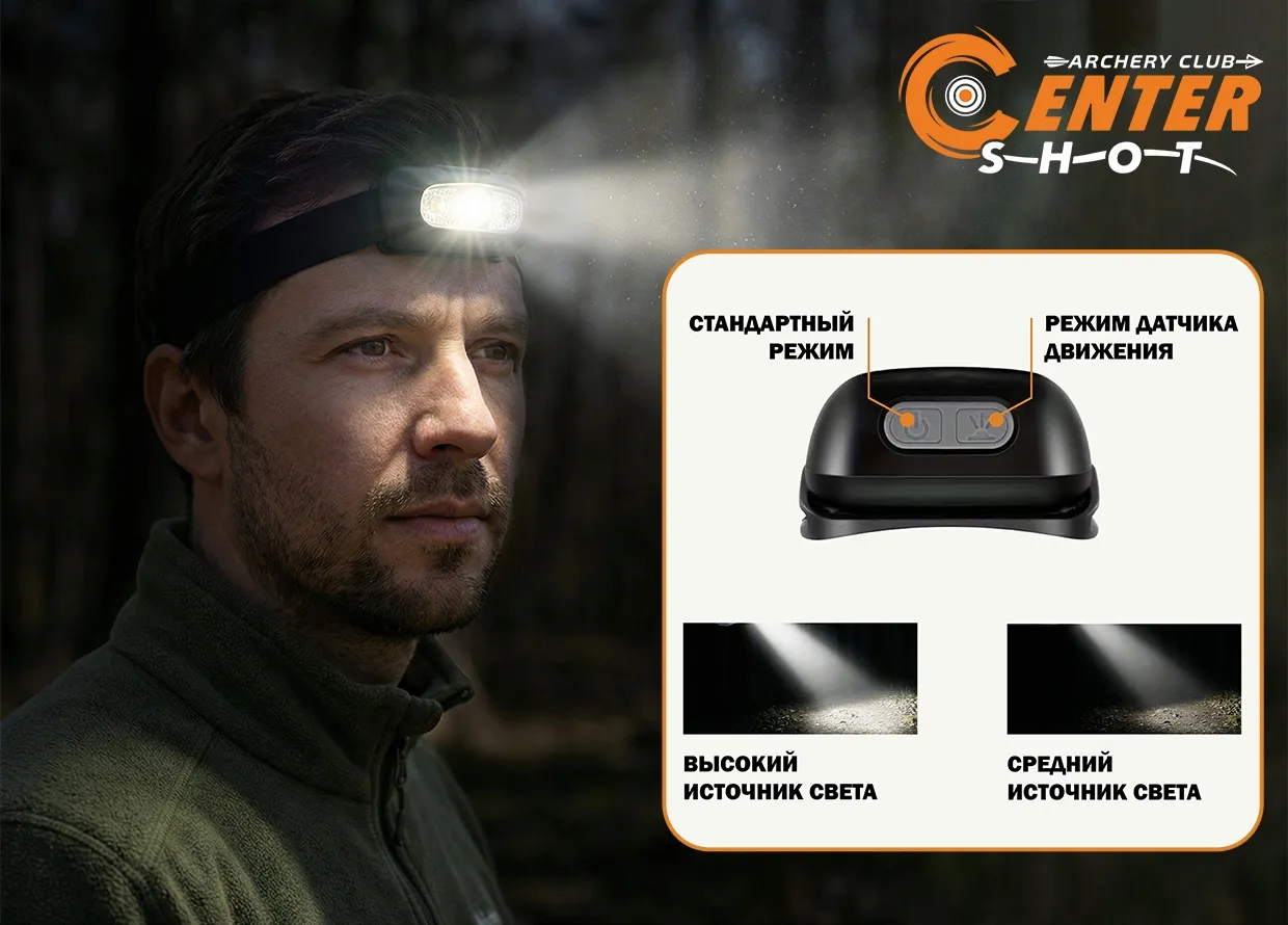 Фонарь налобный Centershot CS2 (USB зарядка, датчик движения)