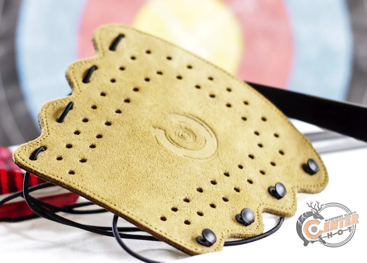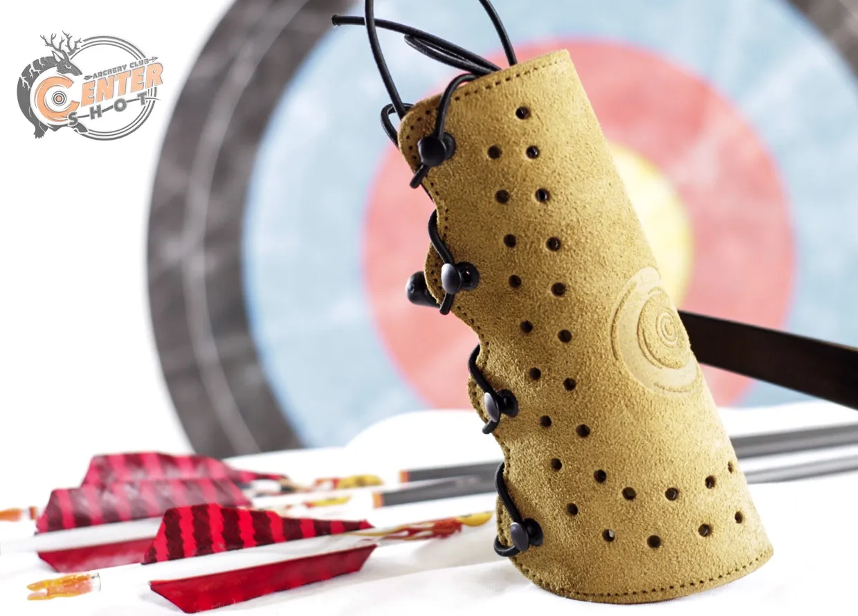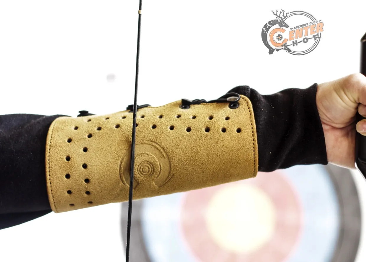 Материал изготовления - натуральная замша. Удобно фиксируется на предплечье лучника с помощью эластичной шнуровки.