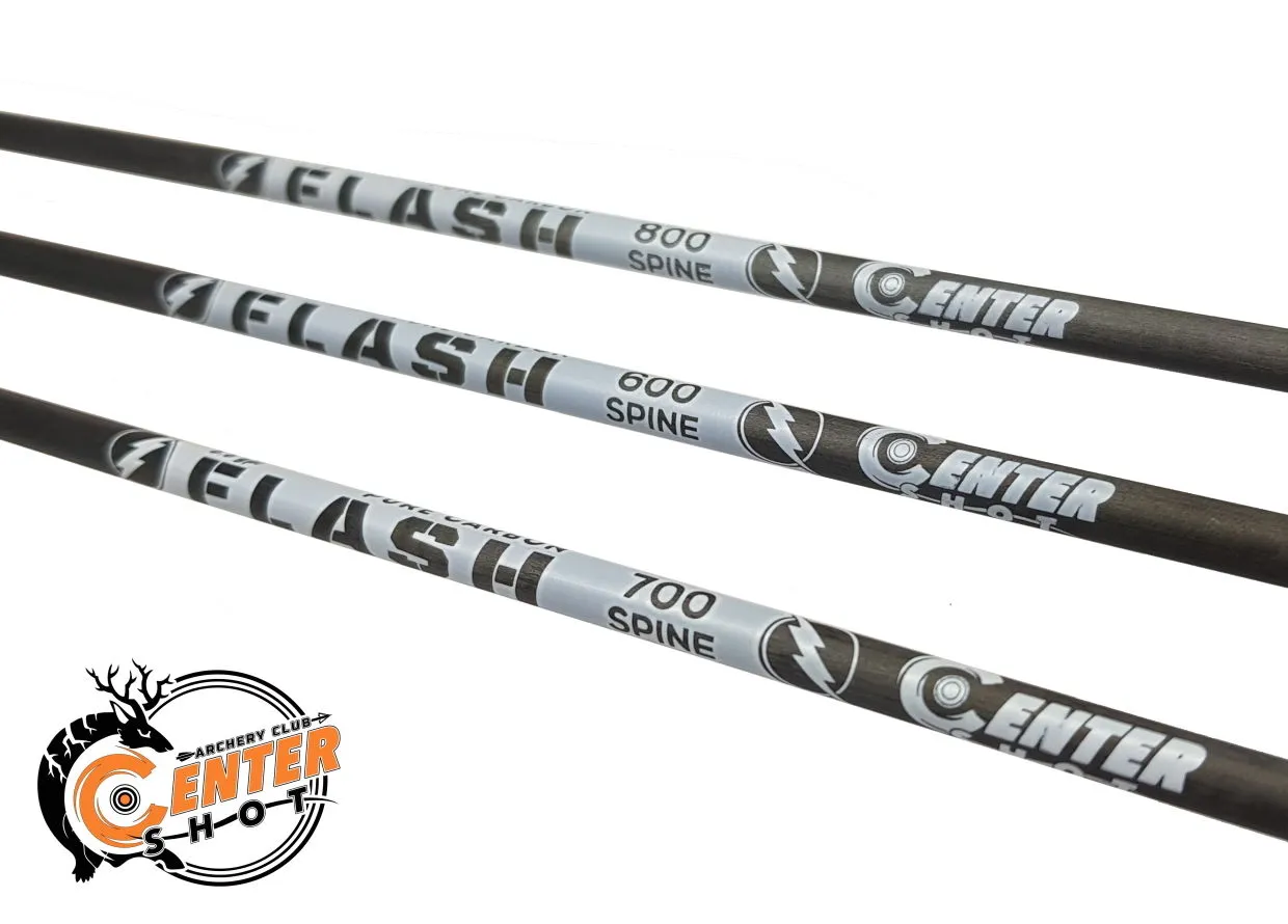 Centershot Flash тонкие спортивные стрелы соревновательного уровня из 100% карбона. Прямизна (straightness) составляет не более 0.006 дюйма от идеальной прямой, что позволяет лучнику быть уверенным в стабильности и кучности своей стрельбы. Стрелы оснащены высококачественными компонентами: никелированными спортивными наконечниками, рифленым скоростным оперением и хвостовиками. Опционально стрелы можно комплектовать спортивными хвостовиками, устанавливаемыми на алюминиевые пины. Все дополнительные компоненты есть в продаже. Линейка спайна (жесткости) варьируется от 350 до 1500, что позволит подобрать стрелу под любую растяжку и силу натяжения. Для удобства различия стрел по спайну, каждый вид стрел оснащается своим цветом оперения и хвостовика. Наконечники в трубку не вклеены.