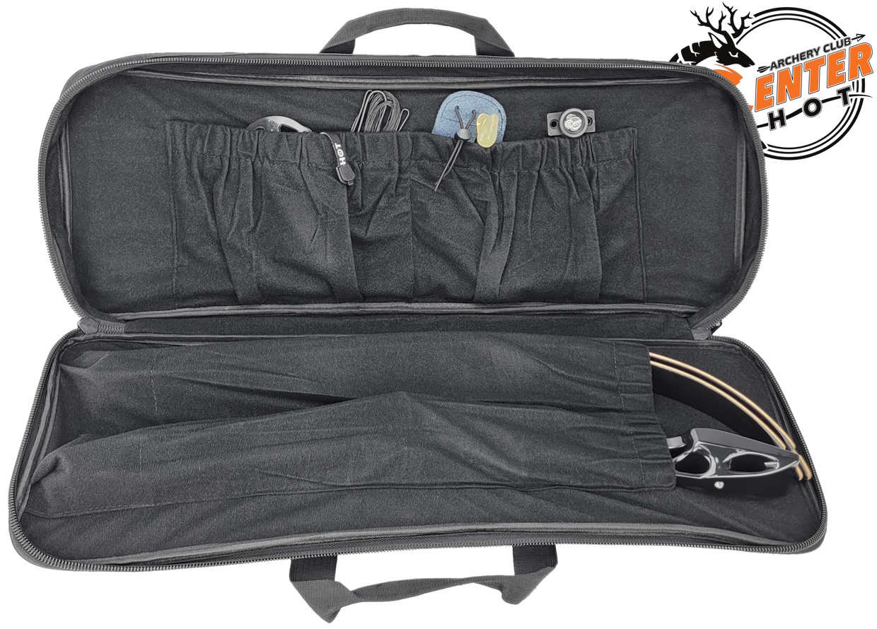 Чехол используется для хранения и переноски классического лука в разобранном виде. Для рукоятки и плеч лука предусмотрены отдельные мягкие карманы из флиса. Есть два внутренних отделения для хранения прицела и прочих аксессуаров, а также один внешний карман на молнии. Укомплектован ручкой и креплением тубуса для стрел.