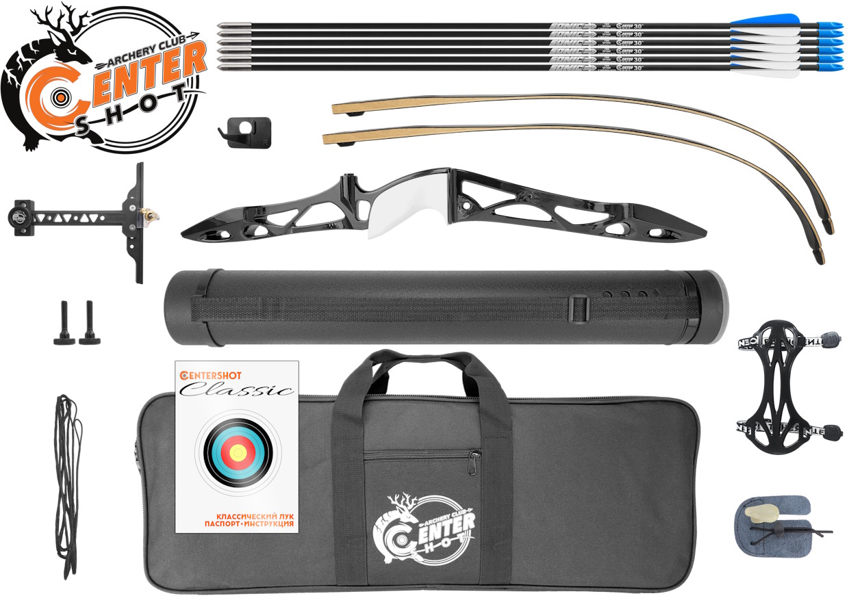 - Лук Classic (в разобранном виде: рукоятка лука, плечи лука, тетива, крепежные болты)