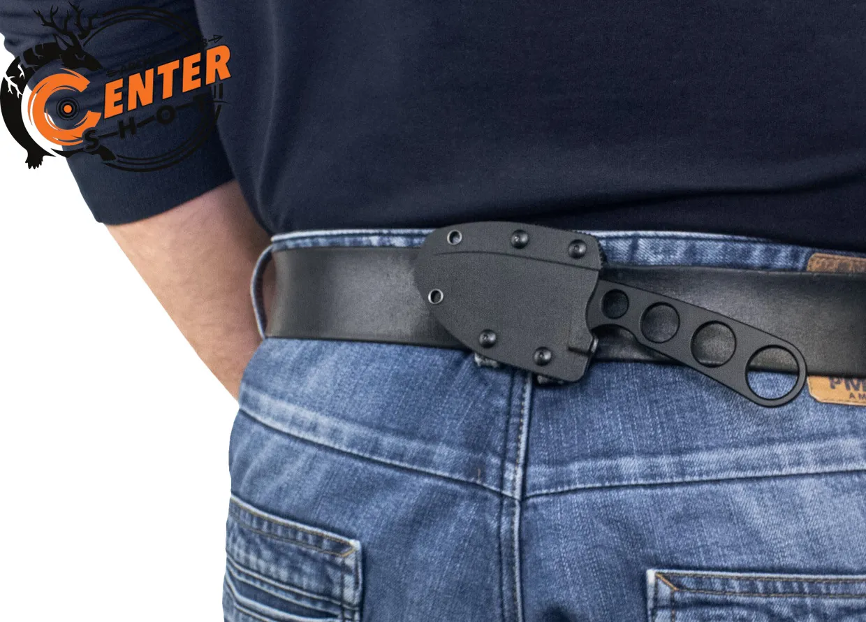 Ножны выполнены из ABS пластика. Конструкция клипсы, позволяет фиксировать ножны вертикально, горизонтально или располагать по диагонали. Клипсу можно снять и носить нож на шее.