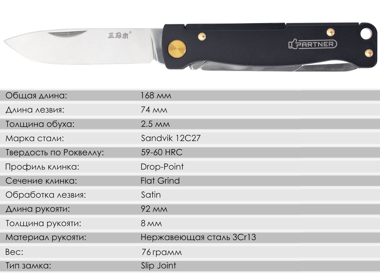 Складной нож SanRenMu Partner Scissors Black (PT721-SB)