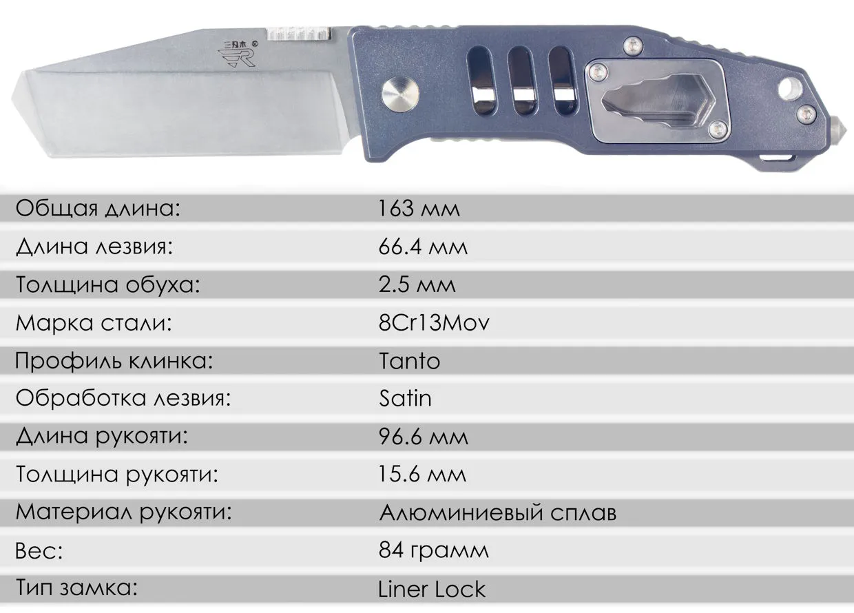 В закрытом состоянии нож EDC превращается в практичную открывашку для бутылок, что особенно удобно во время городских прогулок или активного отдыха на природе. Интегрированный в рукоять гаечный ключ (размеры: 10, 8, 6 и 4 мм) и стеклобой расширяют функциональность инструмента.