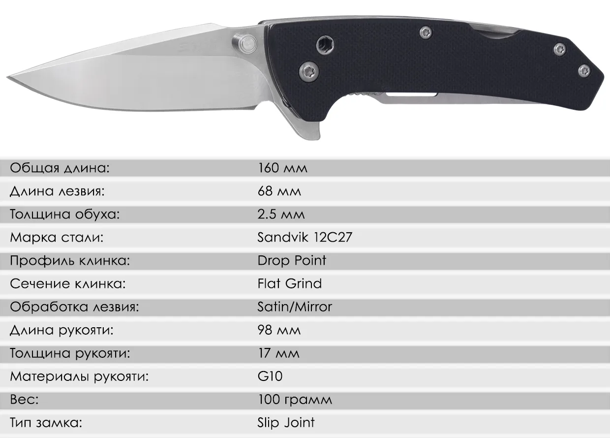 Клинок ножа изготовлен из высококачественной шведской стали Sandvik 12C27, которая славится своей устойчивостью к коррозии и легкостью в заточке. Благодаря особой рецептуре, включающей ванадий и цирконий, сталь сохраняет остроту режущей кромки длительное время.