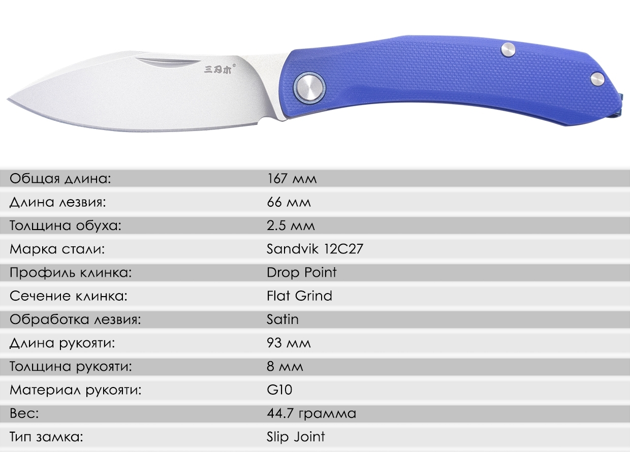 В открытом положении лезвие удерживается замком Slip Joint. Чтобы закрыть клинок, нужно просто приложить небольшое усилие - полной фиксацией нож не обладает.