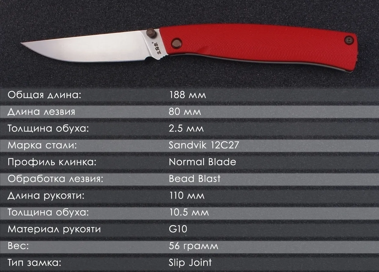 SanRenMu 311L – элегантный джентельменский нож для повседневного ношения. Классическая форма клинка и рукояти делают этот нож одинаково уместным и в разрезании бифштекса в городском ресторане и нарезки сосисок на пикнике. Клинок ножа выполнен из шведской стали Sandvic 12C27. Это недорогая нержавеющая марка стали считается одной из лучших в своем классе благодаря исходному сырью – скандинавской руде, насыщенной ванадием, цирконием и другими ценными примесями. Sandvic 12C27 обладает высокой противокоррозионной стойкостью, легко затачивается и устойчива к сколам. Клинок ножа имеет классический скандинавский профиль Normal Blade. Режущая кромка поднимается к острию, которое располагается на одной линии с прямым длинным обухом – это многофункциональный профиль, позволяющий использовать нож в самых разных сферах применения. Рукоять ножа выполнена из G10 – одного из самых популярных материалов для изготовления рукояток ножей. G10 – это композит из стеклоткани и эпоксидных смол, отличающийся потрясающей прочностью, устойчивостью к износу и стойкостью к перепадам температурам. Кроме того, G10 не скользит в руке, не впитывает влагу и обладает низкой электрической проводимостью. В открытом положении лезвие удерживается замком Slip Joint. Чтобы закрыть клинок, нужно просто приложить небольшое усилие - полной фиксацией нож не обладает. Нож открывается с помощью шпенька. Это наиболее популярный метод открытия современных ножей. Просто, компактно и удобно. Характеристики: Общая длина: 190 мм Длина лезвия: 80 мм Толщина обуха: 2.5 мм Марка стали: Sandvik 12C27 Твердость по Роквеллу: 56-58 HRC Профиль клинка: Normal Blade Обработка лезвия: Bead blast Осевой узел: шайба Длина рукояти: 110 мм Толщина рукояти: 10.5 мм Материал рукояти: G10 Вес: 56 грамм Тип замка: Slip Joint Метод открытия: шпенек Назначение: EDC ежедневное ношение; джентельменский нож