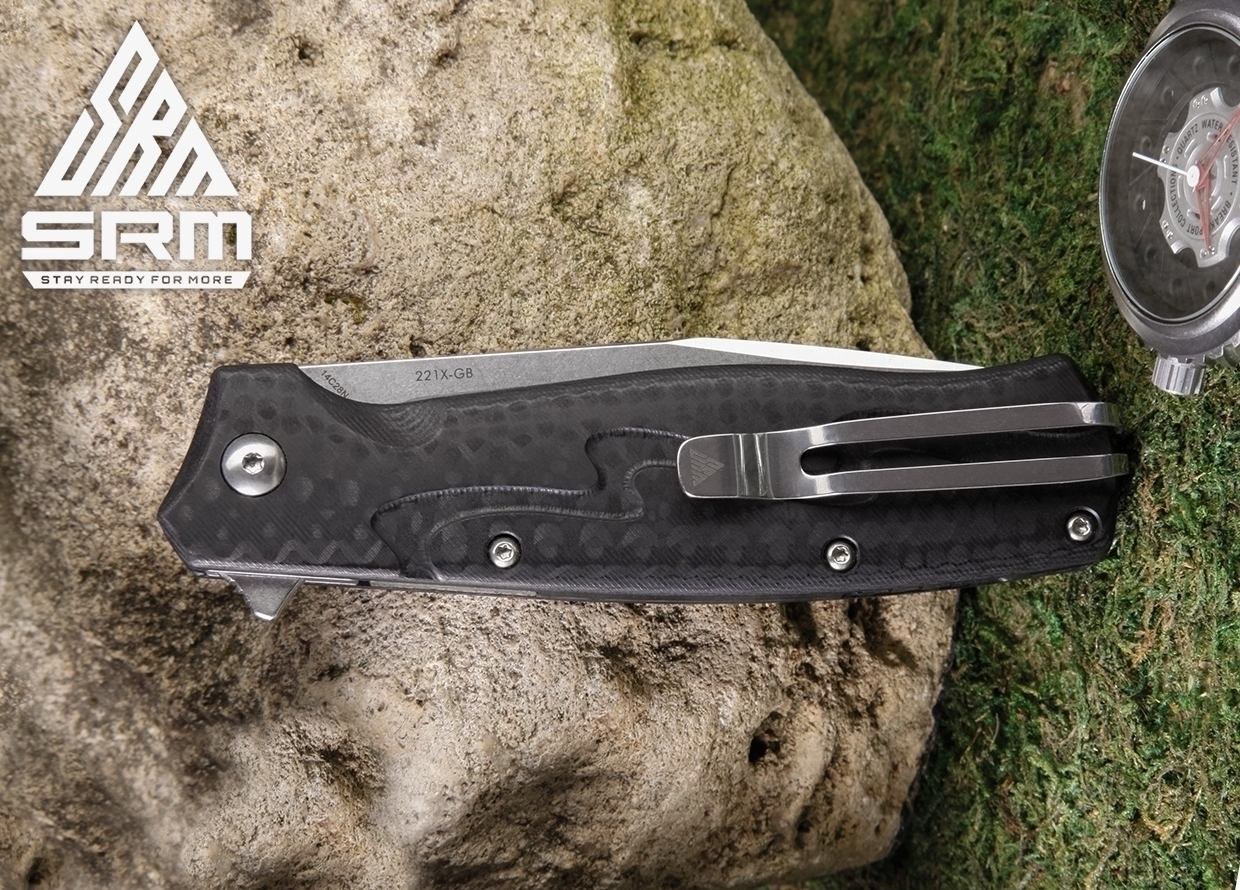 SRM 221X-GB — первоклассный складной тактический карманный нож может, похвастаться внушительным клинком Боуи. Интуитивно понятный механизм кнопочной блокировки обеспечивает быстрое и удобное использование одной рукой, а также надежную фиксацию