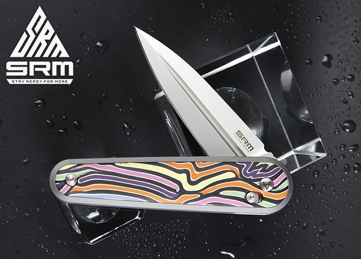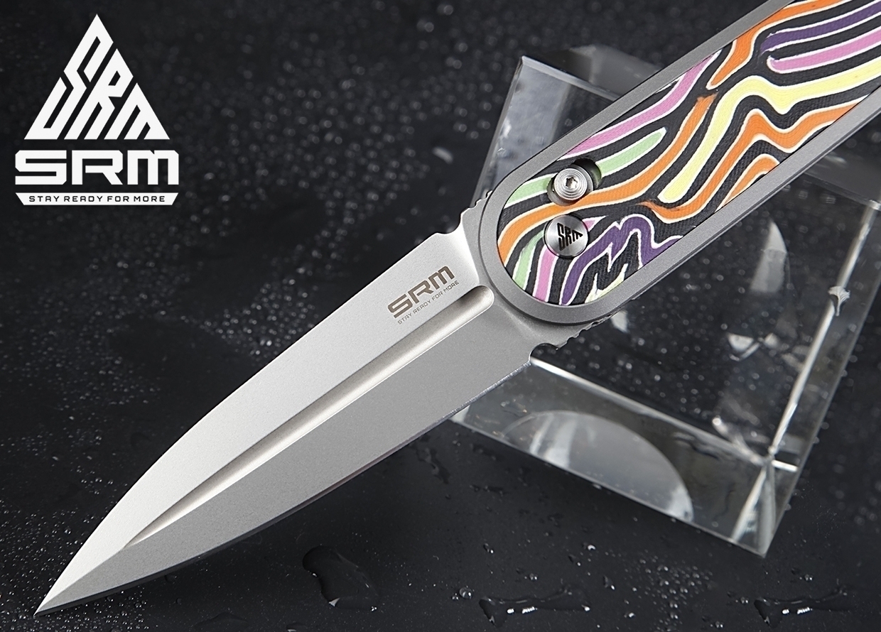 Складной нож SRM 251MB-GX обладает необычным и запоминающимся дизайном: симметричный клинок выкидывается из рукоятки флиппером, однако вместо привычного плавника мы видим округлую поверхность с насечкой. Тем удивительнее, что это эстетичное решение никак не мешает удобству и функциональности самого ножа. Клинок не обоюдоострый – верхняя грань представляет собой фальшлезвие.