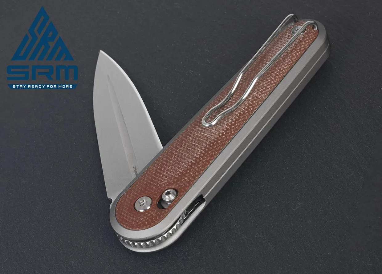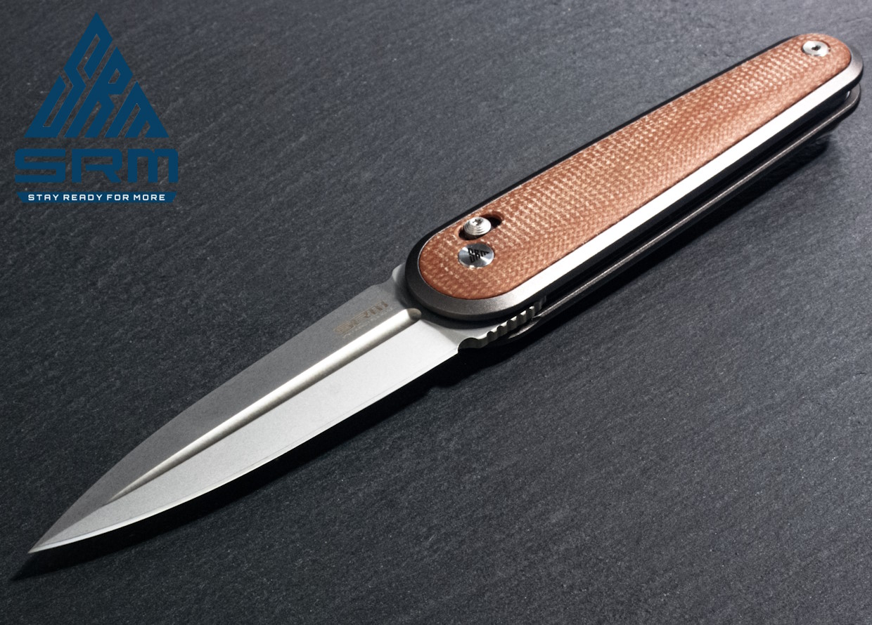 Складной нож SRM 251MB обладает необычным и запоминающимся дизайном: симметричный клинок выкидывается из рукоятки механизмом flipper, однако вместо привычного плавника мы видим округлую поверхность с насечкой. Тем удивительнее, что это эстетичное решение никак не мешает удобству и функциональности самого ножа. Клинок не обоюдоострый – верхняя грань представляет собой фальшлезвие.