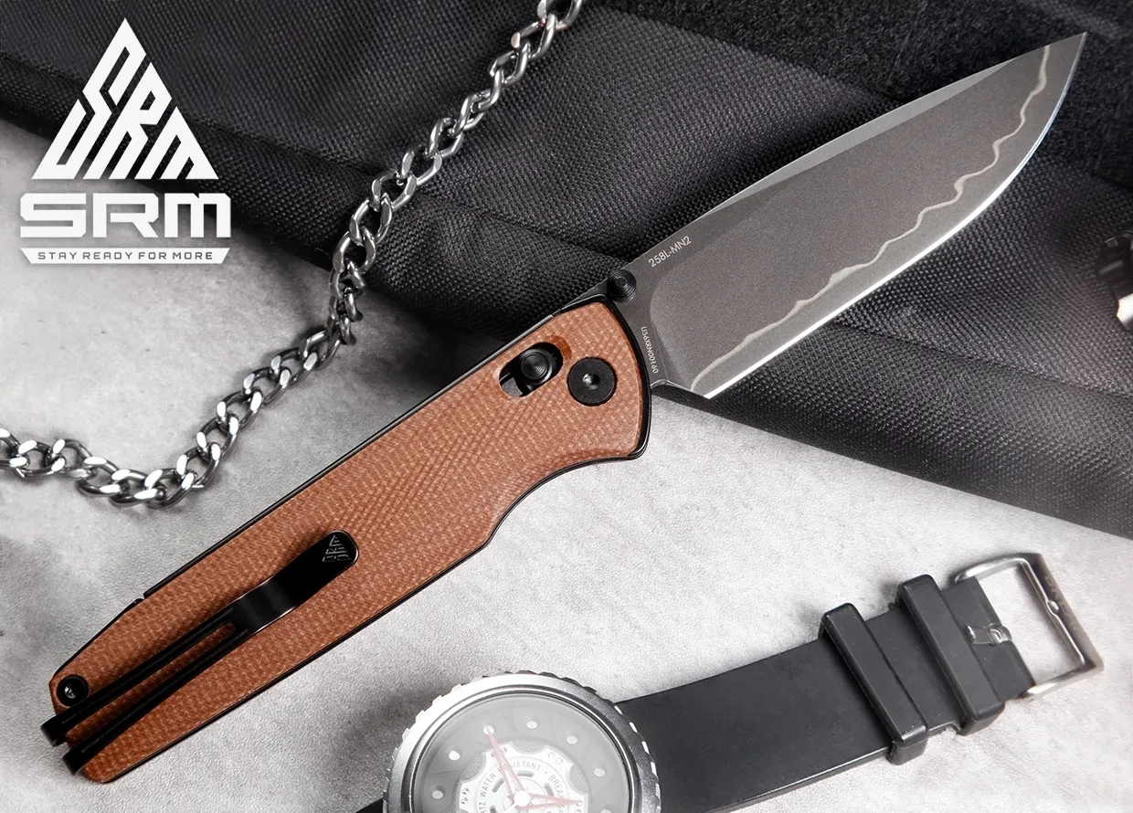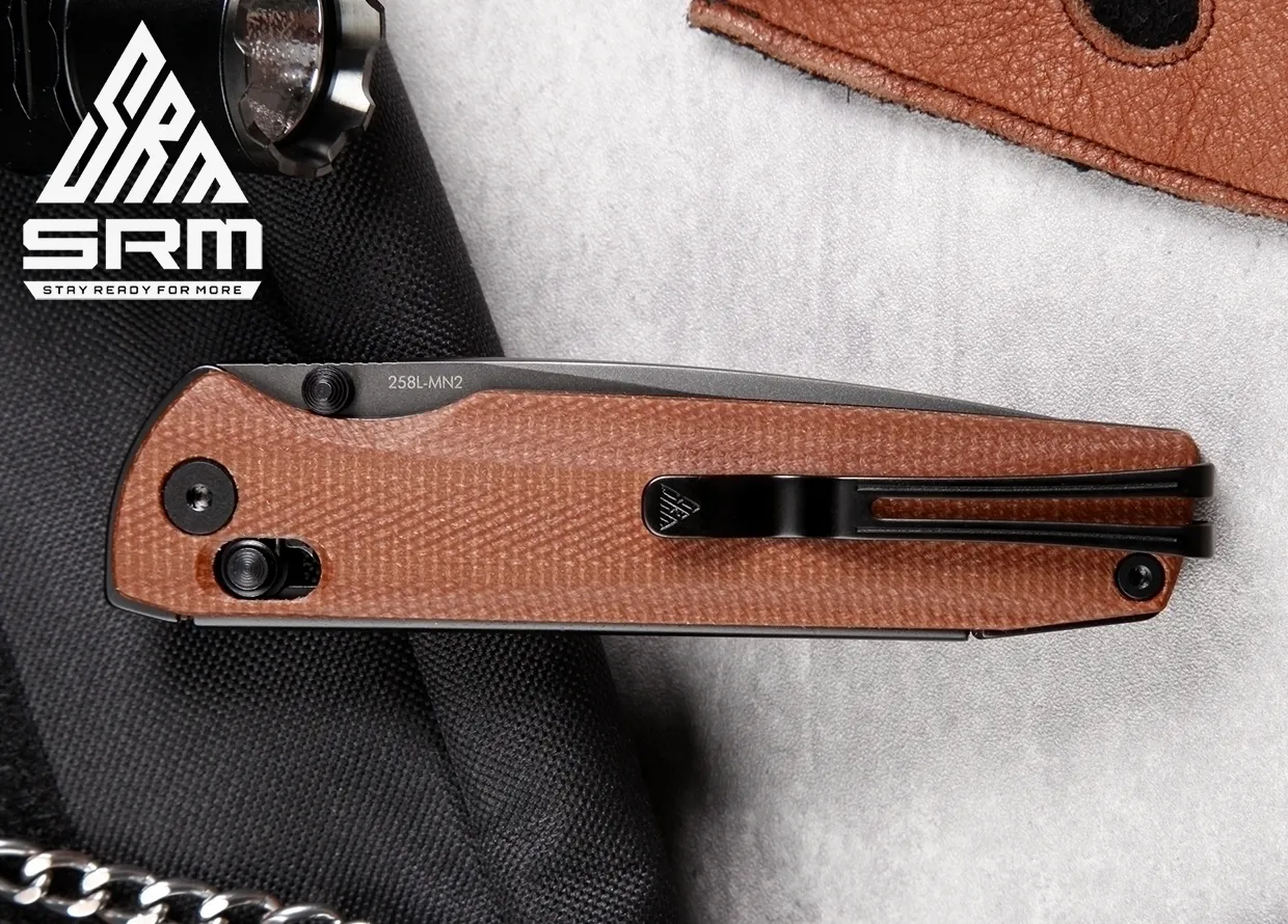 SRM 258L – одна из самых популярных серий ножей марки SRM. Свое признание нож получил благодаря исключительной механике раскрытия лезвия, а также классическому дизайну клинка и рукояти. Нож на монолайнере с керамическими подшипниками в осевом узле.