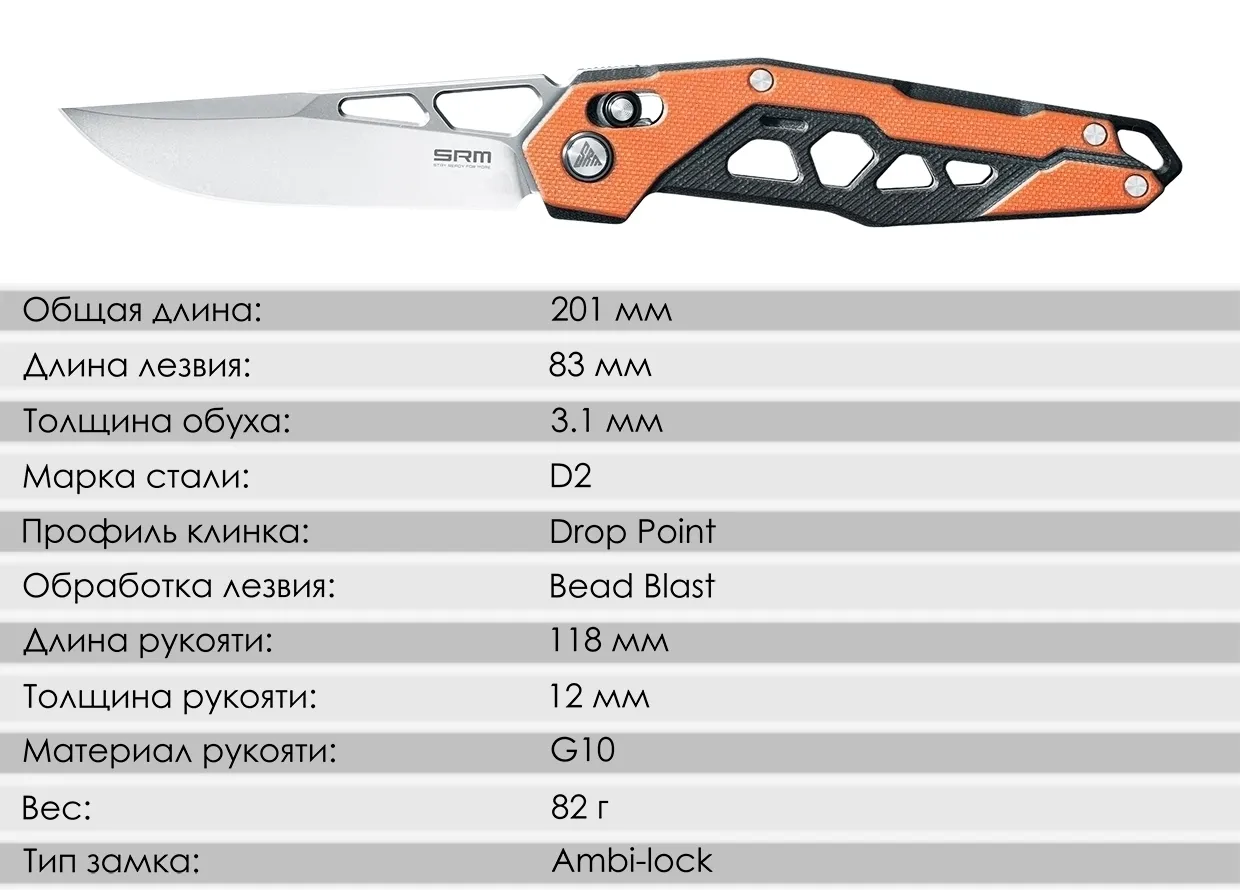 SRM 9225-GJ – городской нож универсального назначения с современным дизайном. Один из первых в линейке SRM.