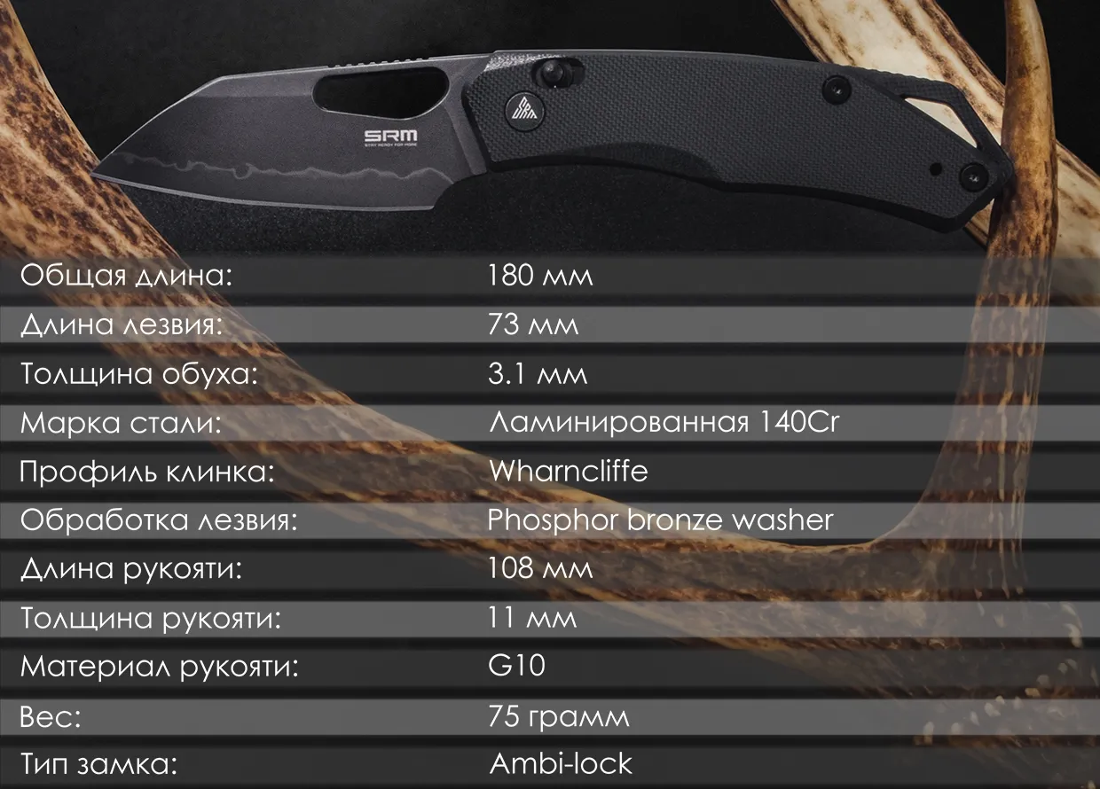 Складной нож SRM CUB 261M-GB2 – практичный и надежный выбор для ежедневного использования (EDC). Этот нож имеет стильный и агрессивный дизайн в черном цвете.