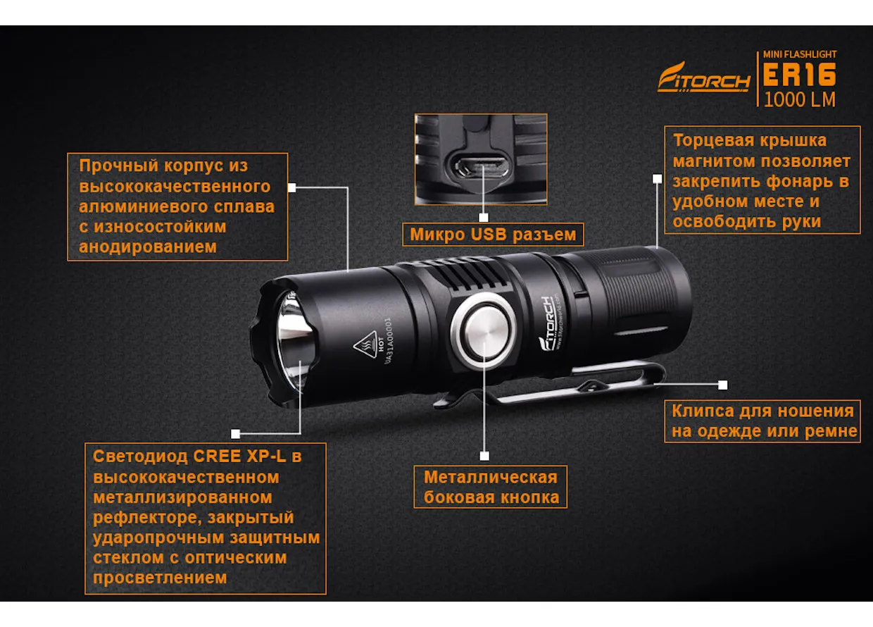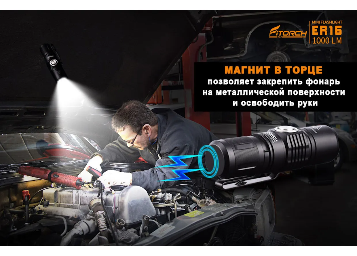 Фонарь FiTorch ER16 универсальный компактный (USB зарядка, магнит)